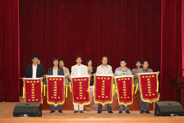 會(huì)議首先由田永強(qiáng)書記宣讀了對(duì)高二年級(jí)學(xué)習(xí)優(yōu)勝班級(jí)、學(xué)習(xí)標(biāo)兵、學(xué)習(xí)進(jìn)步標(biāo)兵等先進(jìn)集體和優(yōu)秀個(gè)人的表彰決定。決定授予16班、13班、11班、3班、7班、6班等6個(gè)班級(jí)為“學(xué)習(xí)優(yōu)勝班級(jí)”;授予15班、3班、6班、8班、9班、4班等6個(gè)班級(jí)為“文明班級(jí)”;授予高二1班第五小組等16個(gè)小組為“優(yōu)秀學(xué)習(xí)小組”稱號(hào);高二16班李嘉軒等8名同學(xué)校級(jí)“學(xué)習(xí)標(biāo)兵”稱號(hào),高二15班馬麗等8名同學(xué)校級(jí)“學(xué)習(xí)進(jìn)步標(biāo)兵”稱號(hào);高二1班曾飛翔等24名同學(xué)年級(jí)“學(xué)習(xí)之星”稱號(hào),高二16班康立等24名同學(xué)年級(jí)“學(xué)習(xí)進(jìn)步之星”稱號(hào);高二1班程巧艷等48名同學(xué)“優(yōu)秀學(xué)科代表”稱號(hào);高二16班史濟(jì)通等48名同學(xué)“優(yōu)秀學(xué)習(xí)小組組長”稱號(hào),盛校長和年級(jí)部領(lǐng)導(dǎo)為獲獎(jiǎng)的集體和個(gè)人頒發(fā)了流動(dòng)紅旗及獎(jiǎng)品。