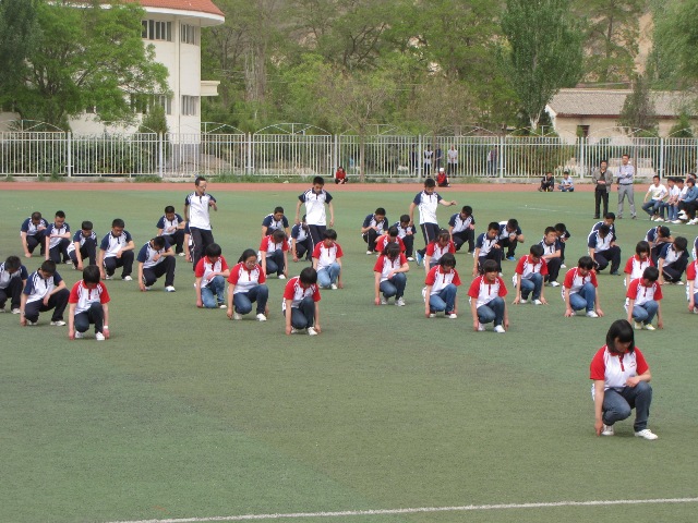 2014年5月26日下午,我?!暗谑粚眯@舞比賽”在田徑運(yùn)動(dòng)場(chǎng)成功舉行,高一年級(jí)1000多名學(xué)生參加比賽。學(xué)校領(lǐng)導(dǎo)和體音美教研組的部分教師擔(dān)任評(píng)委,為參賽班級(jí)評(píng)分。