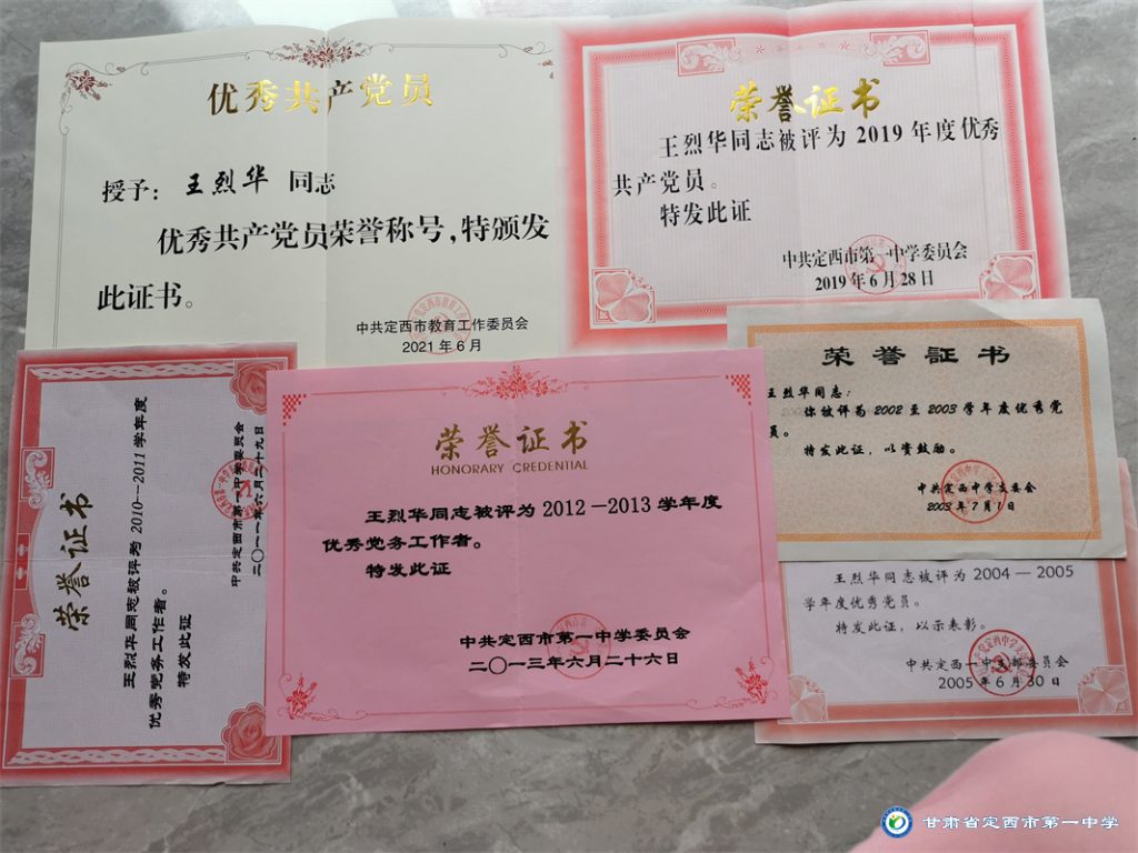 德高為師,身正為范。作為一名共產(chǎn)黨員,王烈華對黨忠誠,對黨組織講實(shí)話、講真話,不當(dāng)兩面派,不做“兩面人”,不管是生活還是工作,都是一個負(fù)責(zé)任的人,多次被學(xué)校評為優(yōu)秀共產(chǎn)黨員。任第九屆省青聯(lián)委員和省十三次黨代會代表期間,積極引導(dǎo)群眾言論,在脫貧攻堅(jiān)方面提出的思想脫貧、教育脫貧的建議倍受組織重視,在文明城市建設(shè)、人才引進(jìn)、職稱晉升等方面及時(shí)向市委領(lǐng)導(dǎo)上呈群眾意見和建議,2021年被中共定西市教育工作委員會授予優(yōu)秀共產(chǎn)黨員榮譽(yù)稱號。