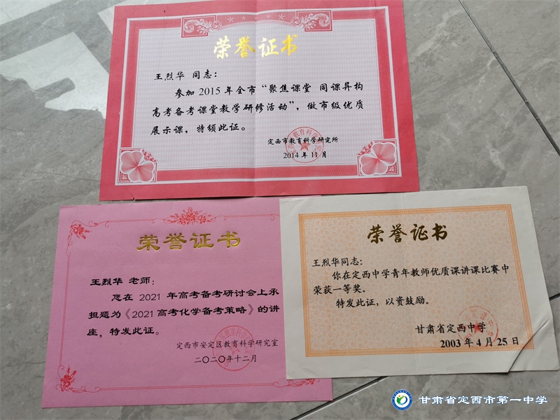 王烈華,中共黨員,中學(xué)高級教師,甘肅省第九屆青聯(lián)會委員,甘肅省第十三次黨代會代表,省“青年教學(xué)能手”,市“青年教學(xué)能手”,市級骨干教師。1993年畢業(yè)于慶陽師?;瘜W(xué)系,1995年至1998年在西北師范大學(xué)化學(xué)教育專業(yè)學(xué)習(xí),取得大學(xué)本科學(xué)歷,1999年調(diào)入定西市第一中學(xué)任教。