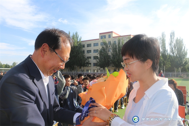 上午8時(shí),畢業(yè)典禮在雄壯的國(guó)歌聲中拉開(kāi)帷幕,全體師生肅然起立,面向國(guó)旗行注目禮,共同唱響國(guó)歌。隨后,學(xué)校領(lǐng)導(dǎo)向全體高三教師獻(xiàn)上鮮花,感謝他們?nèi)陙?lái)風(fēng)雨無(wú)阻的辛勤付出,正是他們用淵博的知識(shí)、開(kāi)闊的胸懷、敬業(yè)的精神、無(wú)私的大愛(ài)幫助了一位又一位學(xué)生,成就了一個(gè)又一個(gè)夢(mèng)想,學(xué)生也用熱烈的掌聲表達(dá)著他們對(duì)老師辛苦付出的感謝。