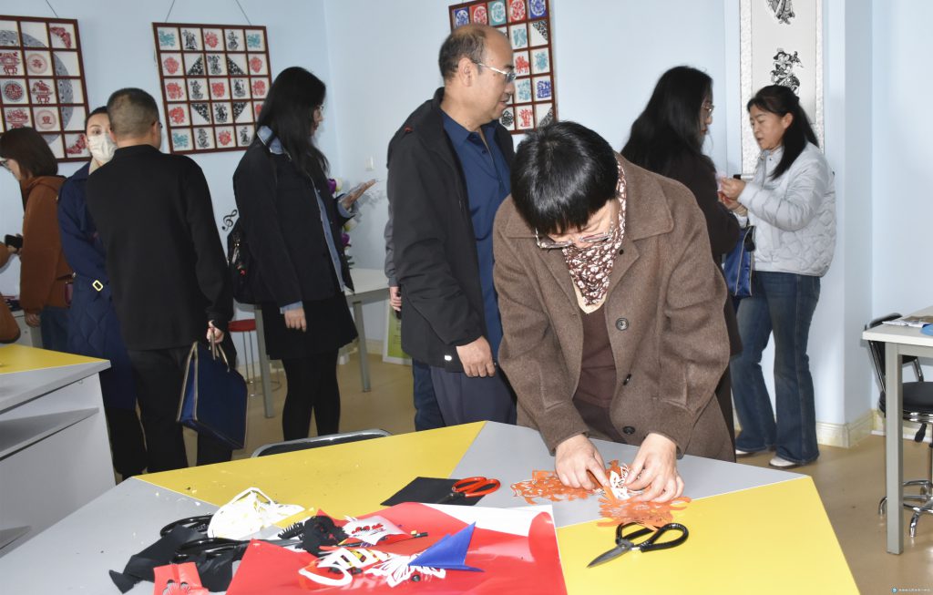 4日下午,考察團(tuán)觀摩社團(tuán)成為另一道亮麗風(fēng)景線。國(guó)防教育館內(nèi),政教處副主任王寶平講述著每一件展品的故事,這些故事引領(lǐng)著青年學(xué)子們向著更加輝煌的未來(lái)邁進(jìn)。校團(tuán)委書(shū)記李曉燕用心介紹每一個(gè)社團(tuán)。剪紙社里,剪刀與紙張的交響樂(lè)悠揚(yáng)響起,無(wú)論是栩栩如生的花鳥(niǎo)魚(yú)蟲(chóng),還是寓意深遠(yuǎn)的傳統(tǒng)圖案,都呈現(xiàn)出技藝和文化的傳承與創(chuàng)新。書(shū)畫(huà)社團(tuán)則是筆墨間的詩(shī)意棲居,讓人在喧囂的世界中找到一片寧?kù)o之地,感受傳統(tǒng)文化的深厚底蘊(yùn)。數(shù)學(xué)建模的世界里,邏輯與創(chuàng)意碰撞出智慧的火花,使抽象的數(shù)字變得生動(dòng)有趣。體育社團(tuán)則是汗水與歡笑的海洋,學(xué)生們不僅鍛煉了體魄,更學(xué)會(huì)了堅(jiān)持與拼搏。心理咨詢(xún)室負(fù)責(zé)人劉倩老師講到,心理咨詢(xún)室如同一盞溫暖的燈塔,照亮了同學(xué)們心中的每一個(gè)角落,幫助他(她)們建立自信,學(xué)會(huì)面對(duì)挑戰(zhàn)?!?/p>