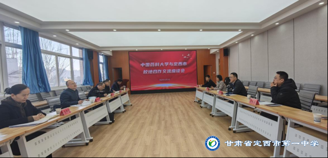2025年12月4日下午,中國藥科大學(xué)藥學(xué)院黨委副書記孟祥康一行應(yīng)邀到訪定西一中,開展中國藥科大學(xué)與定西市校地合作交流座談會。會議聚焦人才引育、教育協(xié)同與產(chǎn)業(yè)賦能,旨在深化校地合作機(jī)制,探索高等教育與地方發(fā)展融合新路徑。市委組織部副部長、市委人才辦主任張昊翀主持會議,基礎(chǔ)醫(yī)學(xué)與臨床藥學(xué)學(xué)院黨委副書記郭志波同志和教授方偉蓉同志、國際醫(yī)藥商學(xué)院黨委副書記趙瑾同志和輔導(dǎo)員孫軍同志出席,市教育局、市中醫(yī)藥產(chǎn)業(yè)局、定西市第一中學(xué)有關(guān)負(fù)責(zé)同志共同參會。