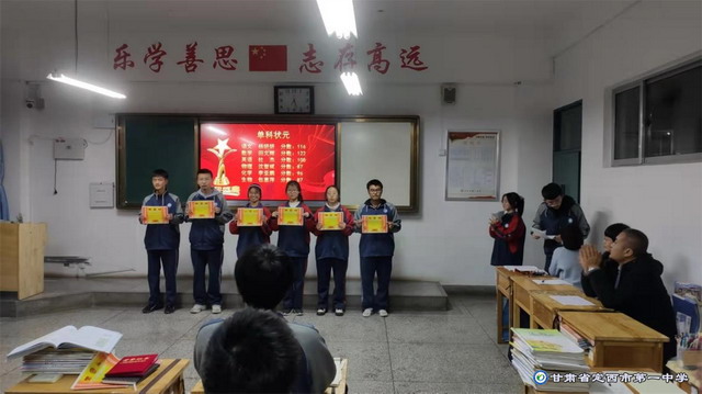 各班對學(xué)習(xí)成績優(yōu)異及進步的同學(xué)進行表彰,并為受到表彰的同學(xué)頒發(fā)獎狀和獎品。